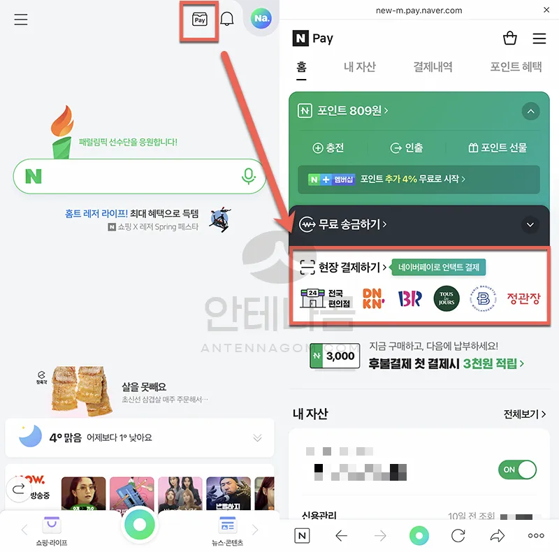 연결된 신용카드로 네이버페이 현장결제 가능한 가맹점