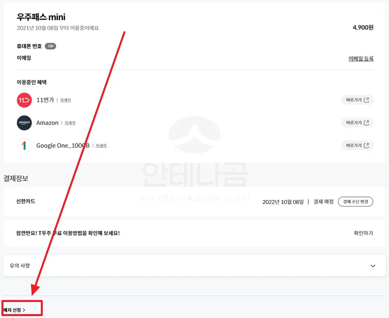 11번가 T우주 우주패스 해지하는 방법