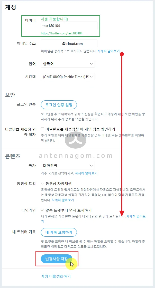 트위터 아이디 변경 방법 (PC)
