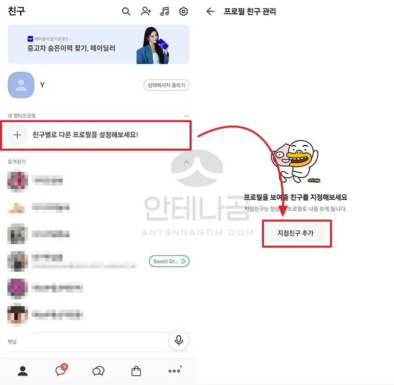 1. 친구 목록에서 멀티 프로필을 선택합니다.