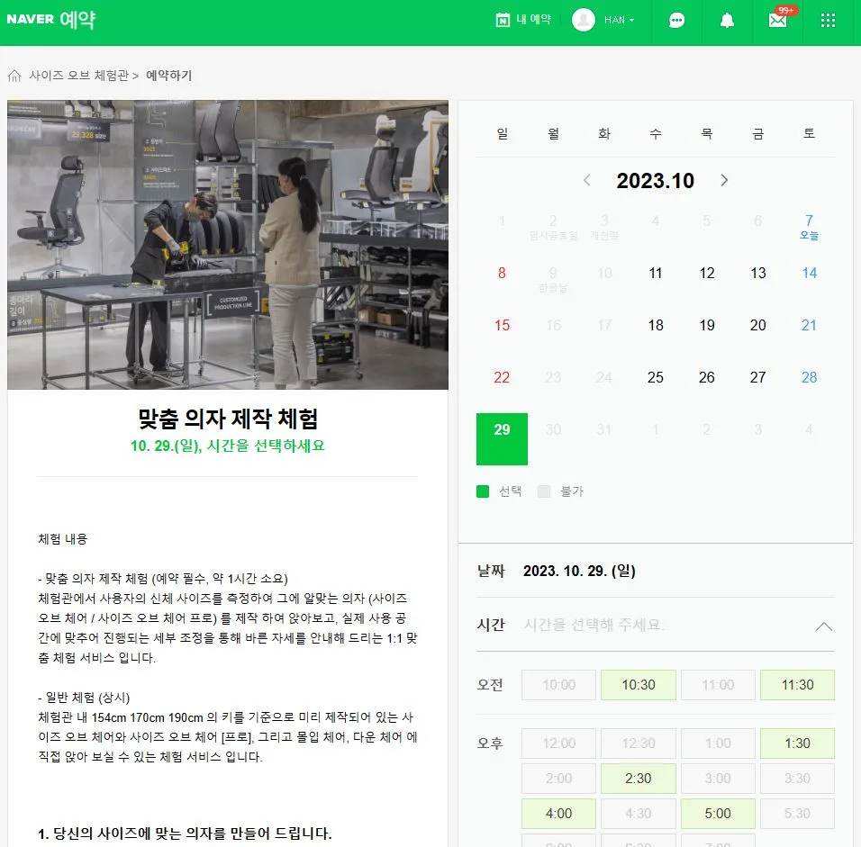 사이즈 오브 체어(사오체) 실제 체험 절차 및 상세 설명