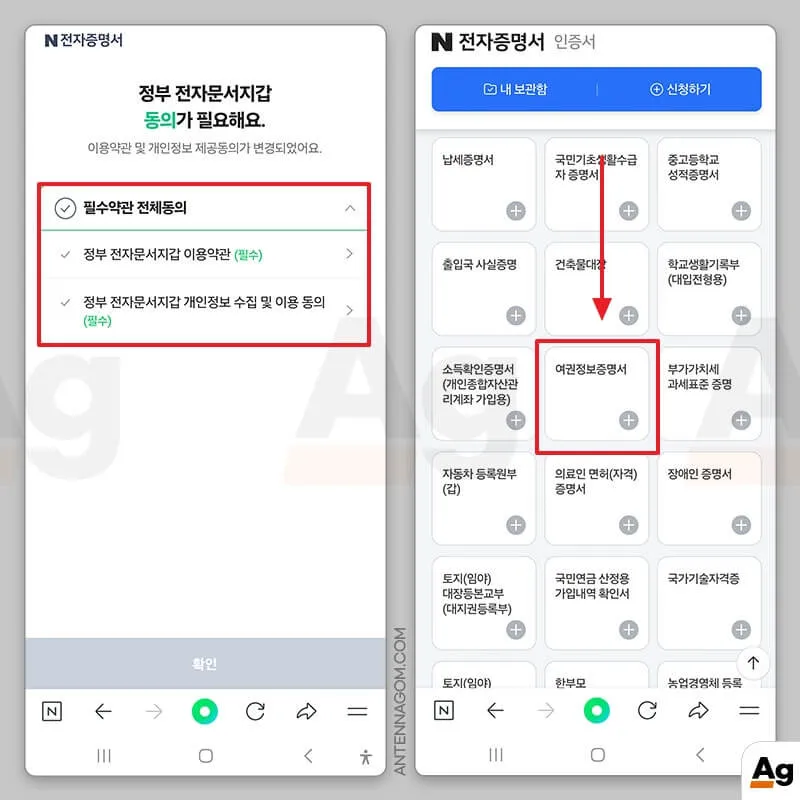 - 먼저 정부 전자문서지갑 필수 약관 동의가 필요합니다.