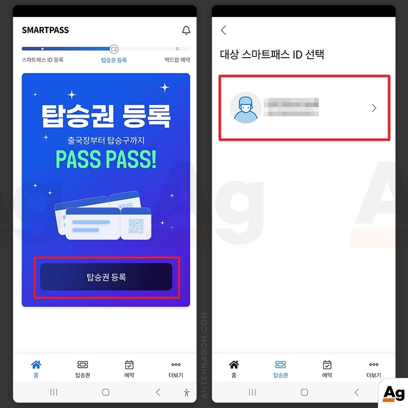 - 스마트패스 앱을 실행하면 탑승권 등록 버튼이 있습니다.