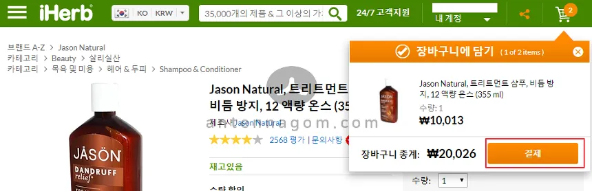 제가 오늘 구입할 샴푸는 샴푸 중에서는 판매량 2위 제품인데요. Jason Natural이라는 제품이에요. 클릭해 보겠습니다.
