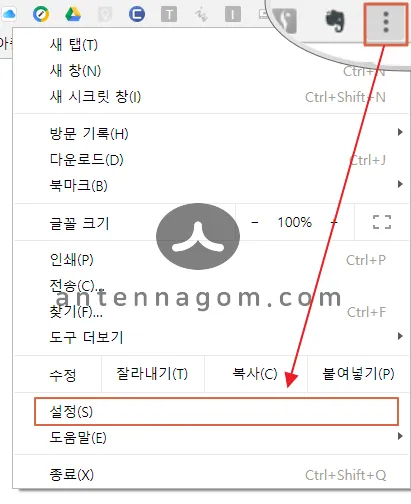 크롬브라우저를 켜면 오른쪽 상단에 점 세개 아이콘이 있는데요. 이 아이콘을 눌러 드롭다운 메뉴를 살펴보면 아래 설정 메뉴가 있습니다. 이 메뉴를 눌러 크롬 비밀번호 저장 삭제 방법에 대해서 알아보도록 할게요.