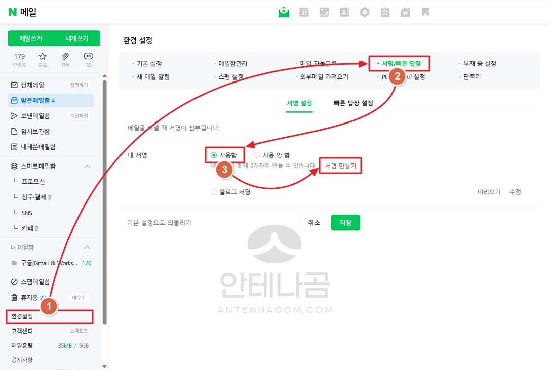 네이버 메일 이미지 서명 만드는 방법 (기본 서명 설정)