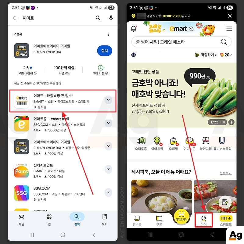 1. 먼저 이마트 앱을 설치합니다. 구글 플레이스토어나 애플 앱스토어에서 설치가 가능한데요.
