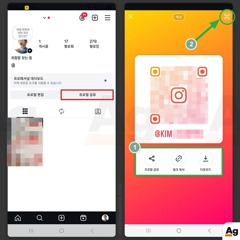 다른 사람의 인스타그램 계정 QR코드로 공유하기