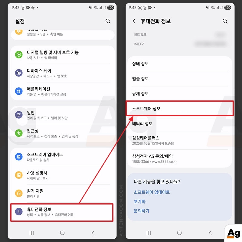 - 설정 화면에서 아래에 휴대전화 정보를 선택합니다.