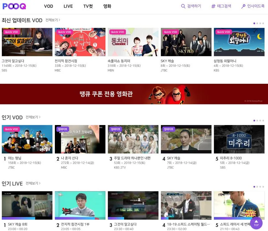 POOQ 이전까지만 해도 다양한 플랫폼에서 지상파 방송들을 볼 수 있었는데, POOQ이 출시된 이후로는 국내에서 합법적으로 지상파 라이브 및 다시보기를 볼 수 있는 어플은 전무한 상황입니다.