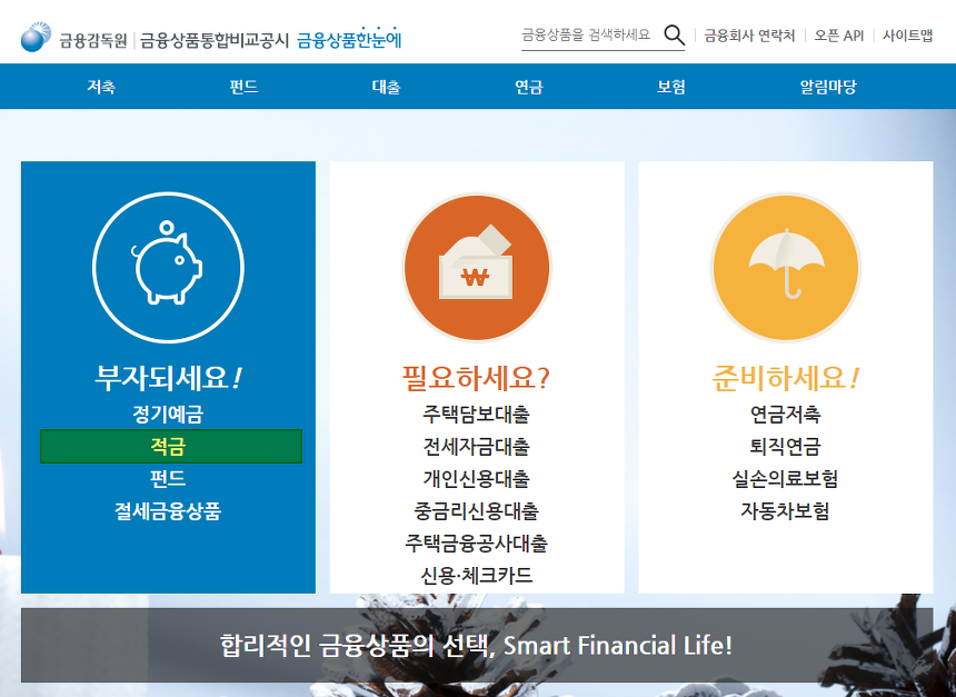 먼저 금융감독원 금융상품 통합 금리 비교 공시 사이트에 접속하면 아래와 같은 화면을 볼 수 있는데요. 주소는 글 아래에 링크를 해놓겠습니다.