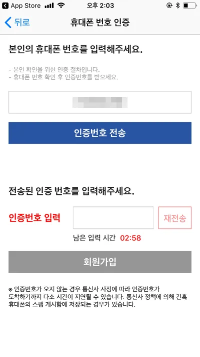 ▼ 휴대폰 인증을 해야 합니다.